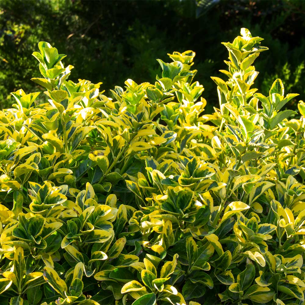The foliage of the Golden Euonymus forms a striking pattern. Each richly colored green leaf features a brightly colored edging of cheerful golden-yellow. And we're not talking about tiny leaves with small splashes of color.
